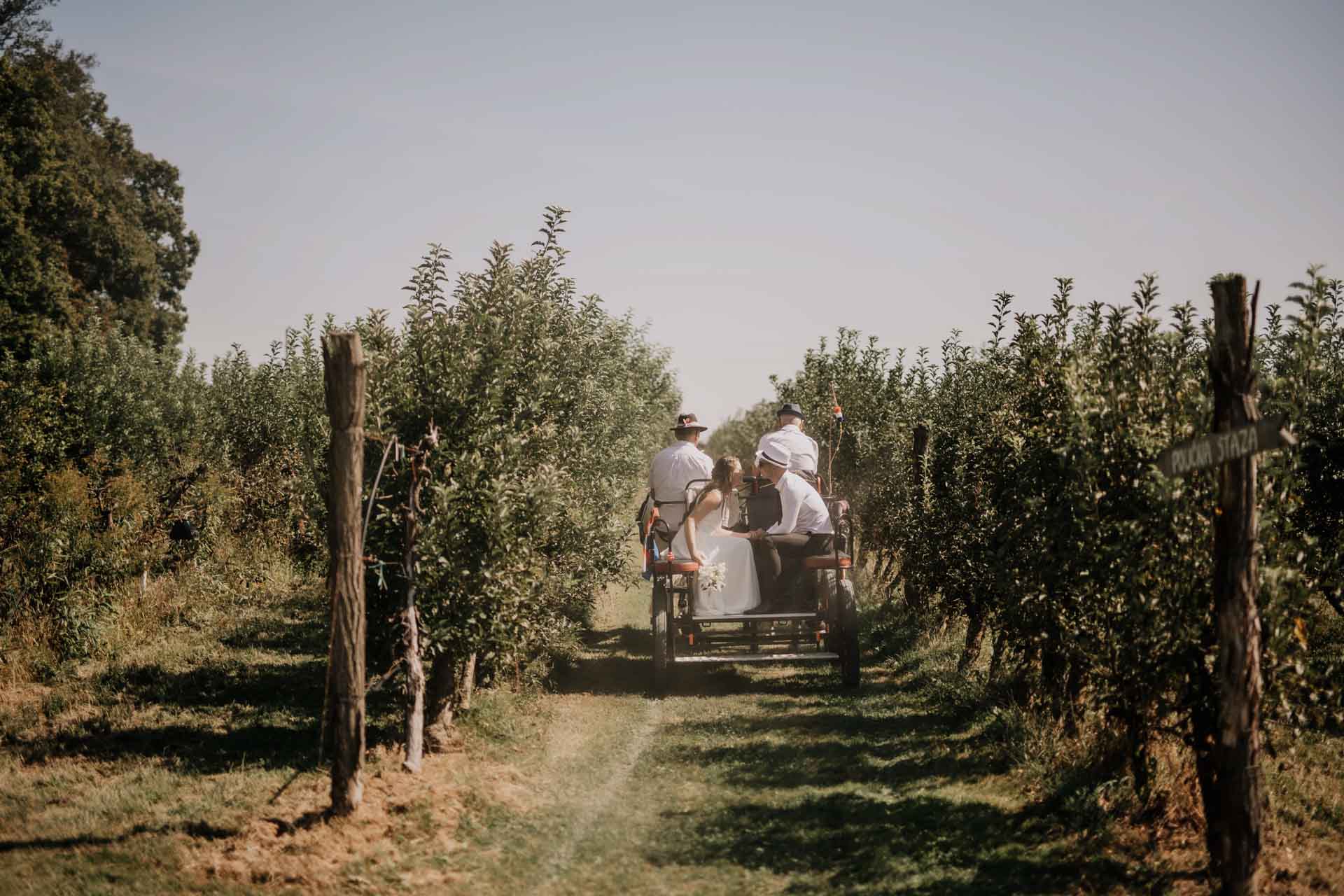 Obilježite svoj romantični dan usred voćnjaka, u jedinstvenom i bajkovitom ambijentu na svježem zraku. Ukoliko želite romantično vjenčanje u prirodi i nešto drugačije i opuštenije od klasičnih sala za vjenčanja, na pravom ste mjestu. Zamislite početak svog vjenčanja uz vožnju kočijom kroz voćnjak, prvi ples pokraj ribnjaka te romantičnu večeru uz baklje i svijeće. Slušamo Vaše želje i pretvaramo bajku u stvarnost. U našoj sjenici organiziramo svadbene svečanosti za 100 uzvanika, a za veće proslave postavljamo šator po Vašem odabiru. Kontaktirajte nas s povjerenjem, iznesite svoje želje i zamisli te se prepustite našem predanom timu.