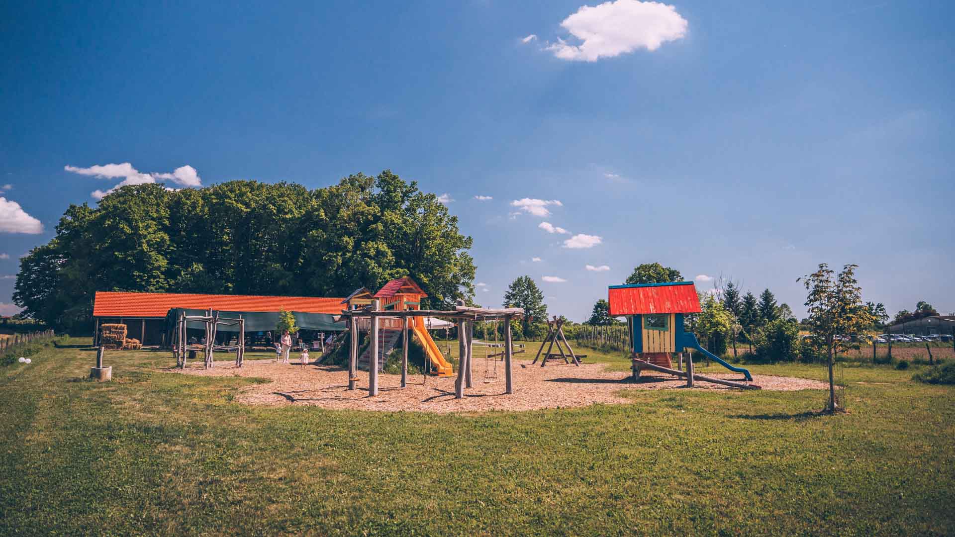 Veliko dječje igralište sagrađeno od prirodnih materijala zabavit će najmlađe i zadovoljiti sve njihove potrebe za igrom i to na svježem i čistom zraku.